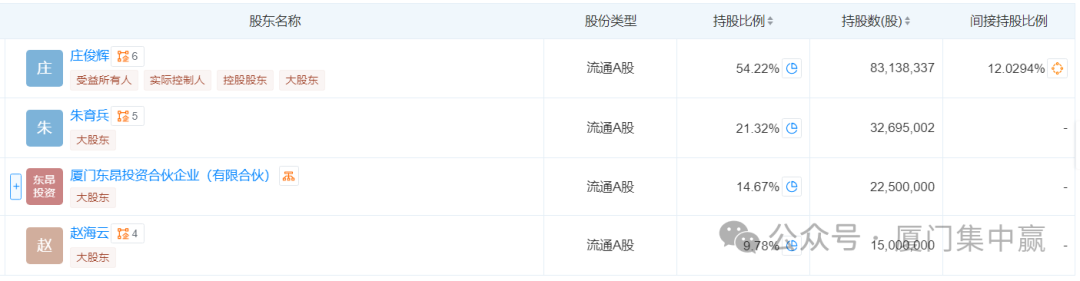 截至招股说明书签署日,庄俊辉直接持有东昂科技8,313.83万股股份,持股比例为54.22%,同时通过厦门东昂投资合伙企业(有限合伙)间接控制东昂科技2,250.00万股股份,占东昂科技股本总额的14.67%,合计控制东昂科技68.89%的股份,为东昂科技控股股东、实际控制人。