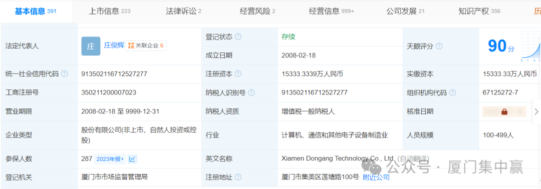 东昂科技成立于2008年2月,位于厦门集美区莲塘路100号,注册资本15333.3339万人民币。