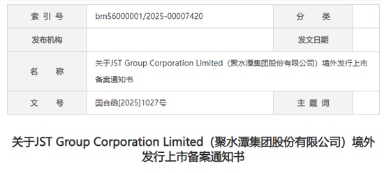 2025年6月13日,中国证监会国际司发布关于JST Group Corporation Limited(聚水潭集团股份有限公司)境外发行上市备案通知书(国合函[2025]1027号)。